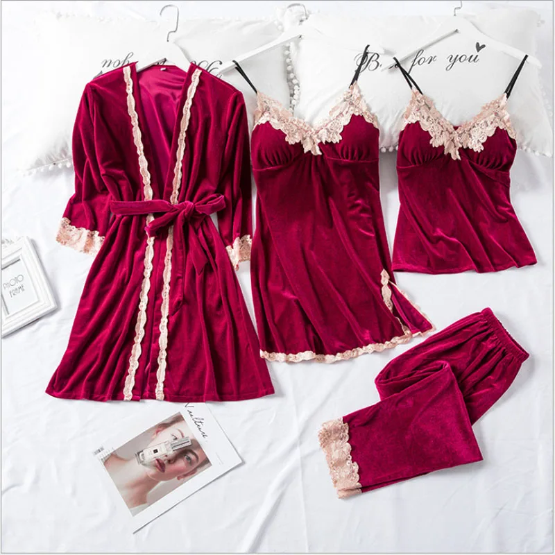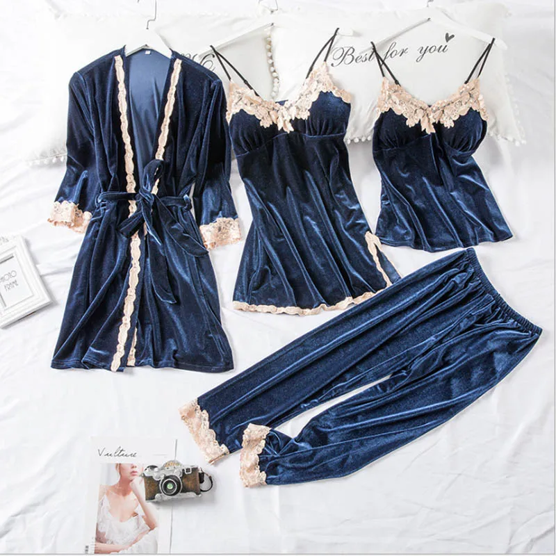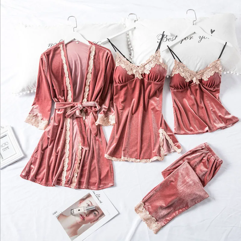 If You want to buy for  Gown sets Autumn and Winter New Robe Four-Piece Women's Gold Velvet Sexy Sling Trousers Set Female ,then  Gown sets Autumn and Winter New Robe Four-Piece Women's Gold Velvet Sexy Sling Trousers Set Female  is possible make you love